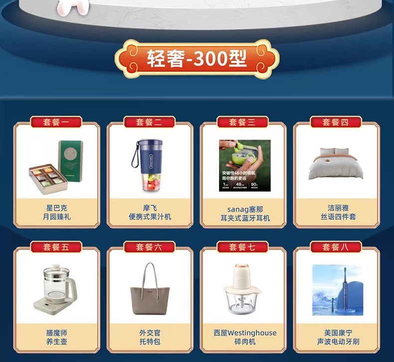 此礼品册为二十选一.金额为300元,全国通用,免费配送,持册人可任选其中一种组合.预约兑换即可,订购热线400-678-8589 团购优惠010 56527576