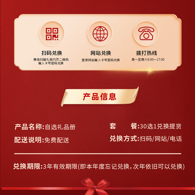 此礼品册为三十选一,面值为500元,全国通用,免费配送,持册人可任选其中一种组合,预约兑换即可.订购热线 400-678-8589 010 56527576